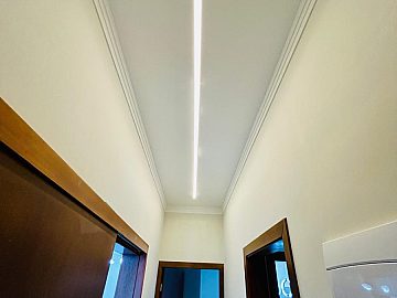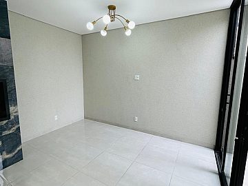 - Sala ampla com pé-direito de 6 metros, entregue com lustre