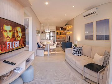 O imóvel possui 53 m² de área útil, com sacada voltada para o lado sombra, garantindo melhor ventilação e menor incidência solar.