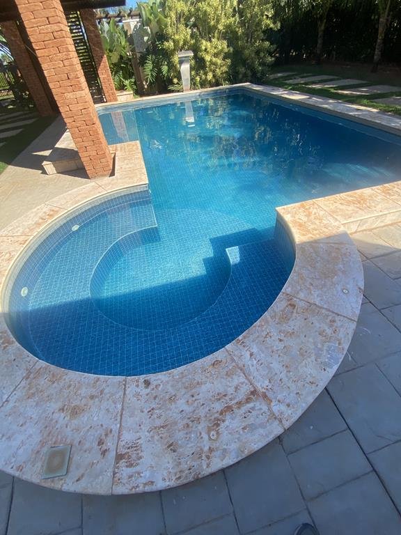 Rancho à venda no Condomínio Enseada Azul 2, em Fronteira/MG, com 1.250 m² de terreno e 300 m² de área construída. O imóvel oferece três suítes amplas, sala espaçosa, cozinha equipada, área de serviço independente e móveis planejados.